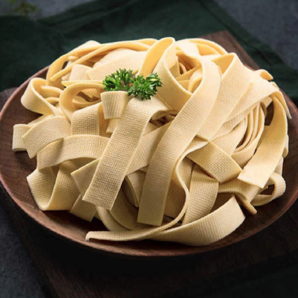 Tofu Skin (Yuba) – Nutritious Benefits: The skin that forms on the surface of boiled soybean milk, after being removed and dried, becomes tofu skin. Therefore, tofu skin has a high protein content, reaching 44.6 grams per 100 grams compared to other soy products. It is therefore often called “vegetarian meat” and is a healthy food suitable for all ages. Suitable for those with weak constitutions, low immunity, or anemia. Furthermore, the lecithin in dried bean curd can lower cholesterol, prevent cardiovascular disease, and protect the heart, offering excellent health benefits. It’s important to note that dried bean curd is relatively high in calories compared to other soy products, containing 457 kcal per 100 grams (compared to 82 kcal for regular tofu, 140 kcal for dried tofu, and 244 kcal for fried tofu).