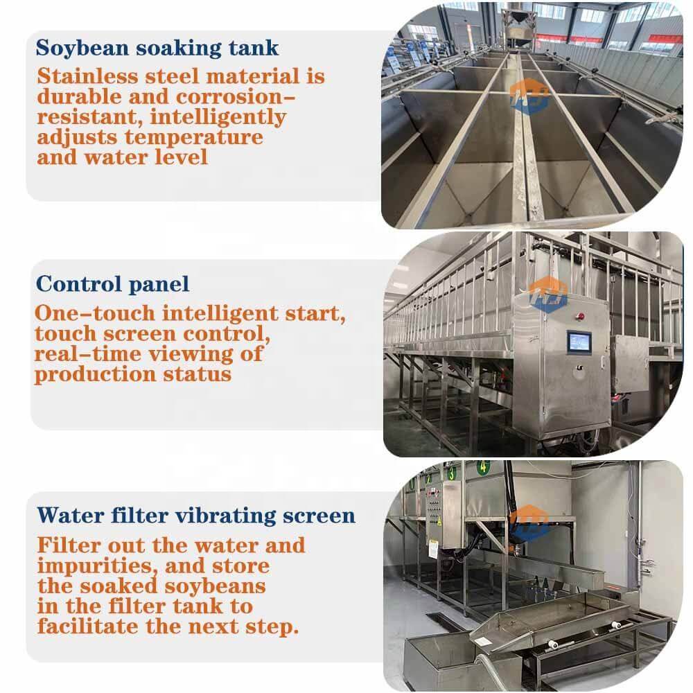Soaking: This refers to allowing soybeans to fully absorb water. After the protein membrane of the soybean absorbs water and swells, its texture changes from hard to brittle and then soft. In the brittle state, the protein membrane is easily broken when ground. After the protein membrane breaks, the protein can disperse in the water, forming a protein colloid, which is soy milk.