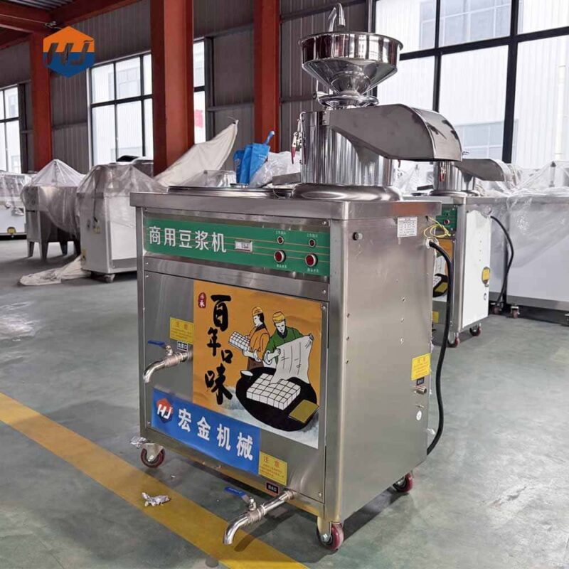 This machine is designed for small-batch soymilk production with a compact footprint, making it ideal for small-scale tofu and soy product workshops or dining establishments、 The process is simple and efficient: soybeans are manually added to the grinder, while water is dispensed through a faucet、 The freshly ground soymilk is then directly transferred to the cooking barrel for boiling、 With a streamlined design, the entire operation can be managed by a single operator, offering convenience and efficiency for small production settings.