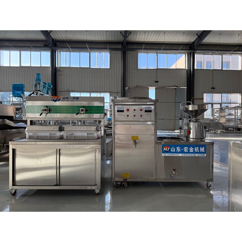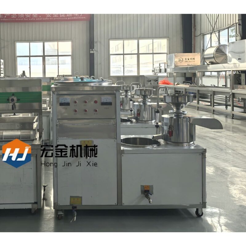 After reaching the proper boiling point, the cooked soymilk is discharged smoothly and can be directed to downstream processing. Equipped with both a raw soymilk tank and a cooking tank, the machine is capable of grinding and cooking simultaneously. This parallel processing significantly increases production efficiency. The machine has a small footprint and is easy to operate, with pulleys that can be moved at any time.