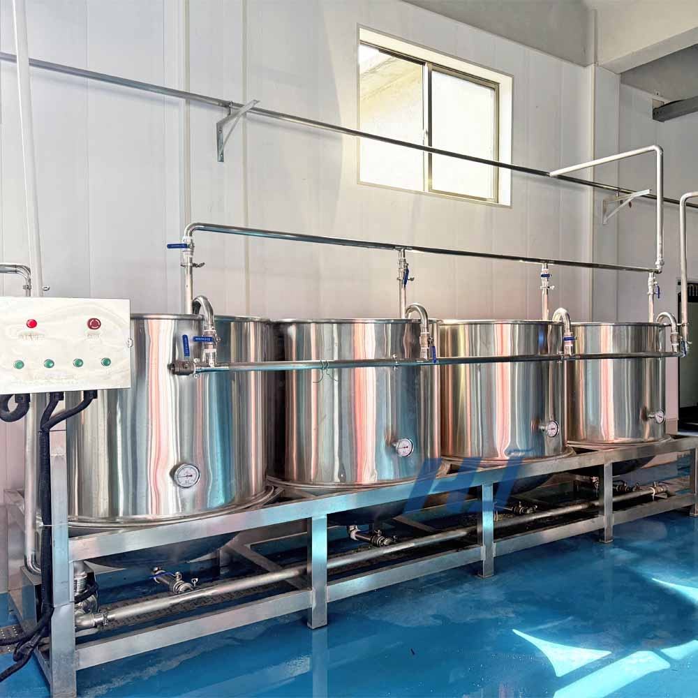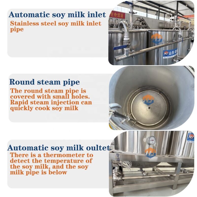 多个煮浆桶依次连接,可实现分段煮制,提高加热效率,使煮浆更加彻底,确保后续加工(如过滤、点浆、做豆腐、豆腐皮等)具有更稳定的品质。
