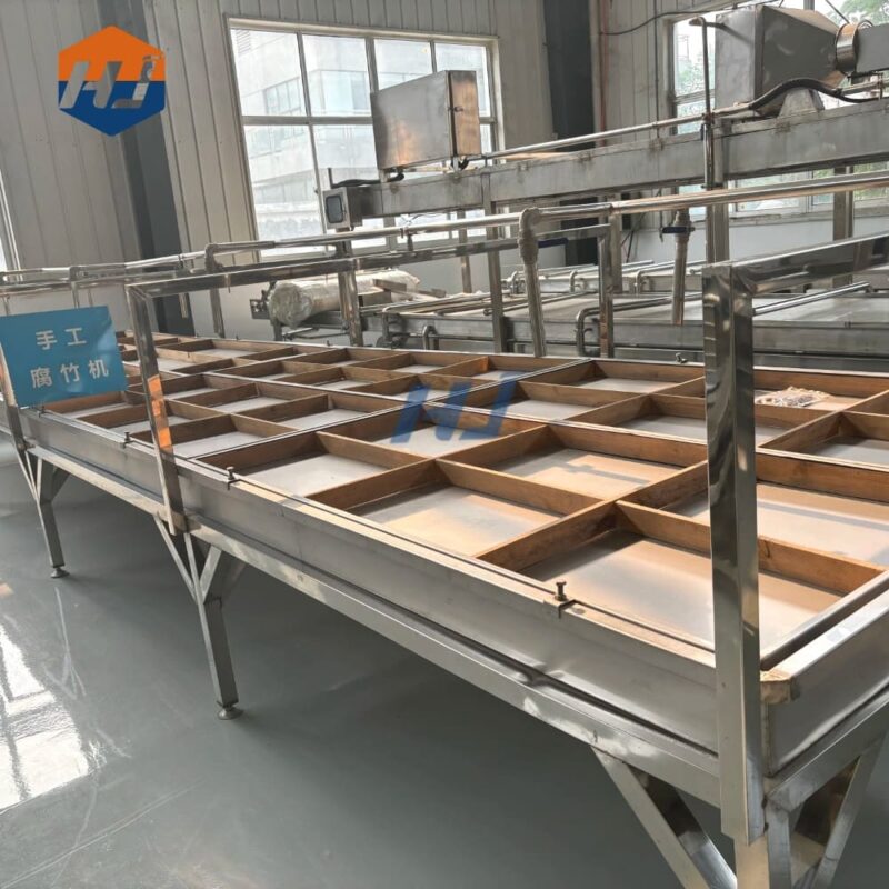 手工腐竹机是一款用于生产传统手工腐竹的食品加工设备,适用于豆制品加工厂、中央厨房及特色豆制品车间。设备采用食品级304不锈钢制造,机器能实现底部蒸汽恒温加热,使腐竹凝结成皮,只需人工揭起腐皮放到架子上晾干,使腐竹膜成型稳定、口感细腻,最大程度保留手工腐竹的香味与韧性。